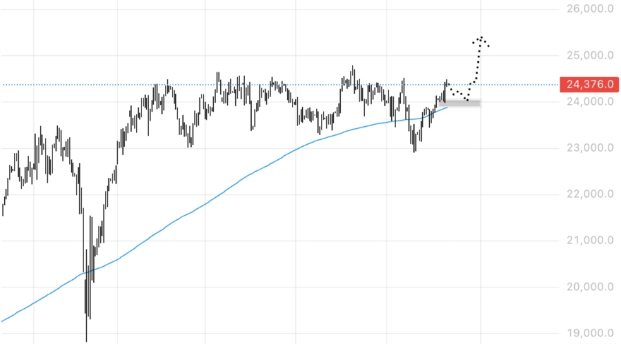 Given the strain on the US greenback and the overheating of the AI ​​sector, European shares appear to be a balanced resolution. Because the probabilities of an instantaneous continuation are comparatively low, the DAX is ready to check the 20-day shifting common earlier than breaking to a brand new peak.
